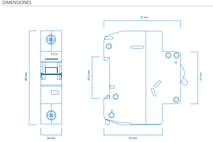 - Poder de corte 10kA: Alta capacidad de interrupción ante fallas